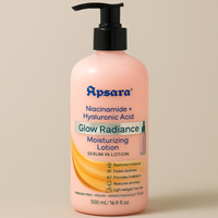 Introducing the next generation of daily moisture: Apsara's Glow Radiance Moisturizing Lotion. This isn't just a lotion—it's a serum-in-lotion, providing the deep nourishment of a serum with the lightweight comfort of a daily moisturizer. Powered by two skincare heroes, Niacinamide (Vitamin B3) and Hyaluronic Acid, this formula is designed to deliver a smooth, dewy, and noticeable glow.